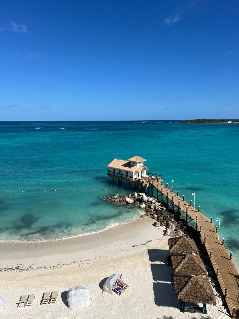 After spending a long weekend at Sandals Royal Bahamian, I can honestly say it’s one of the best couples’ getaways I’ve ever experienced. From the moment you step off the plane you feel the hospitable Bahamian culture. Once we arrived at the resort, everything felt effortless—check-in was a breeze, we were handed a glass of champagne, and within minutes, we were soaking in the gorgeous ocean views. The resort itself is stunning, with two massive pools, beachfront cabanas, and plenty of places to just relax and enjoy paradise. They have recently been renovating the decor and finishes here and I am personally obsessed with the dainty touches and the flamingo pool room was a complete vibe!