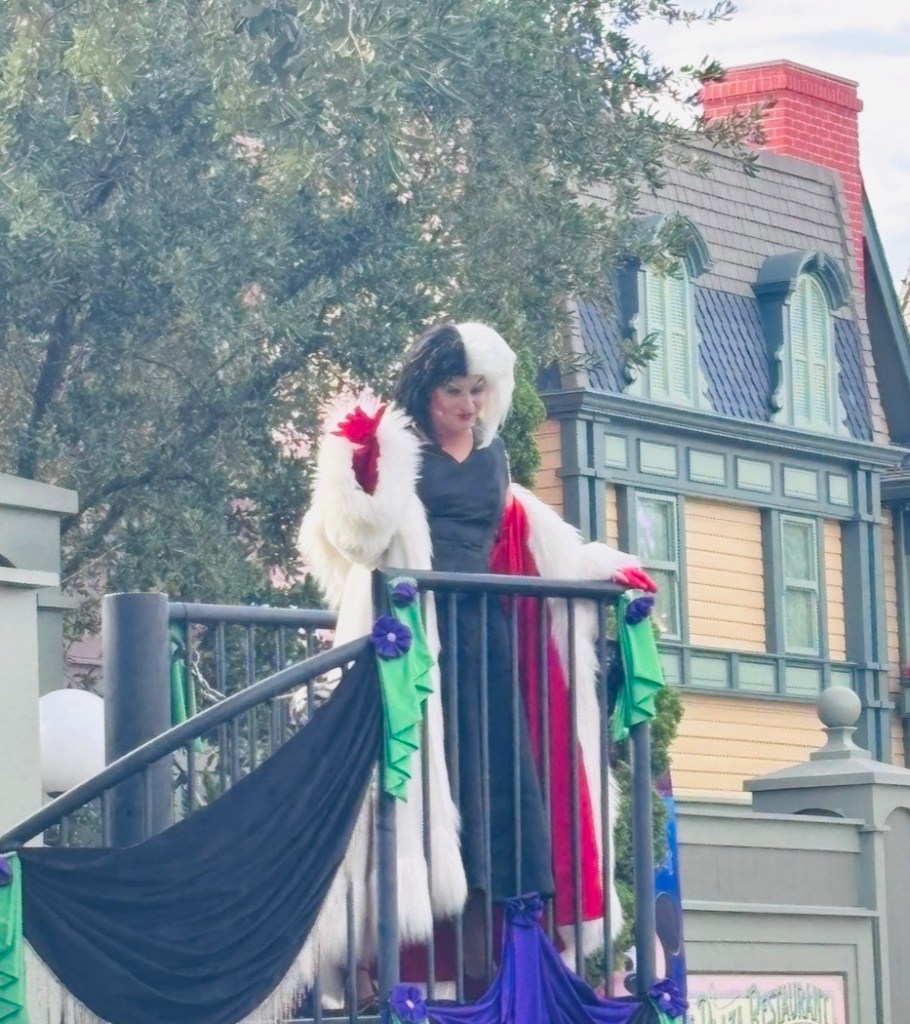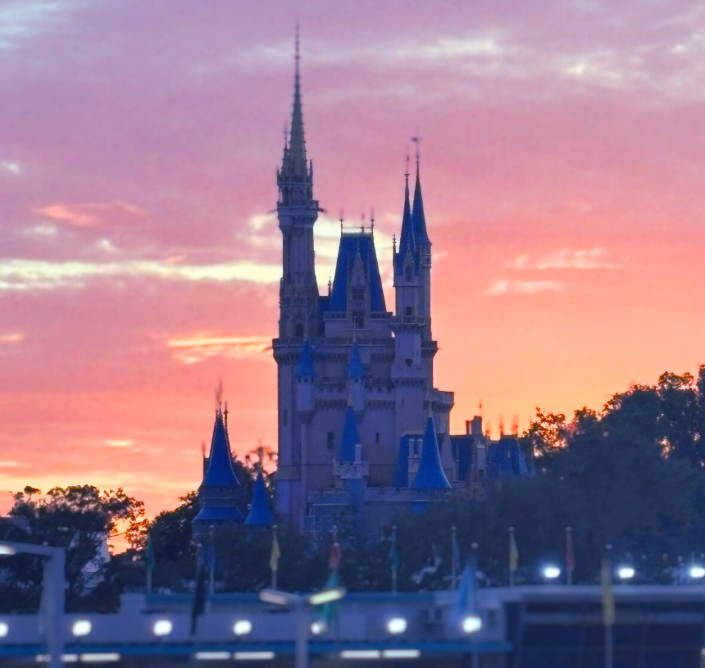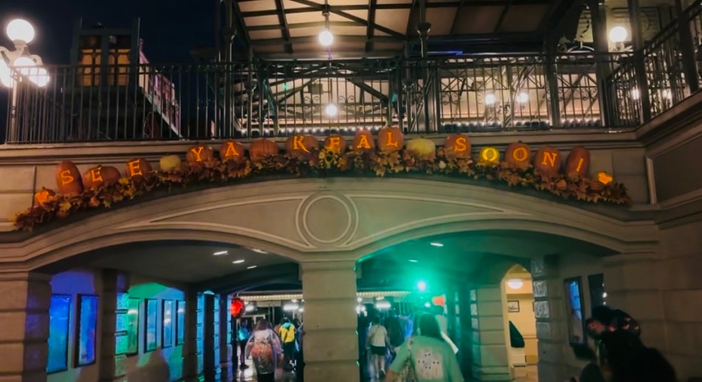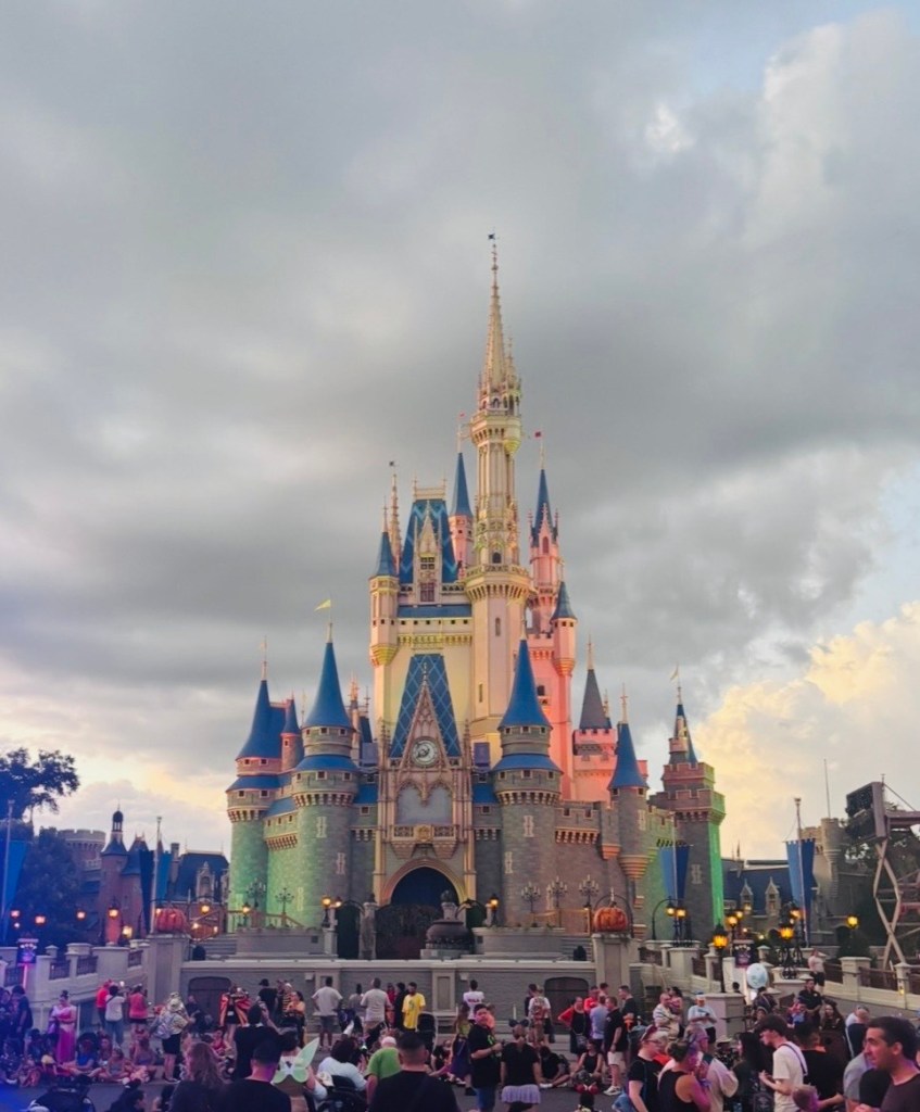 I attended one of these events recently, and I’m here to share all of the spooky fun details about my experience! On party nights, the park closes to daytime guests at 6 pm and the party officially kicks off at 7 pm, however, party goers can begin to enter the park as early as 4 pm – so that’s exactly what we did. You would be surprised at what you can get done before the party even begins! By the time the party started, we had already taken lots of Halloween-themed photos, ridden two of my favorite attractions, and had a snack while watching the sun set over Cinderella Castle (magical)!